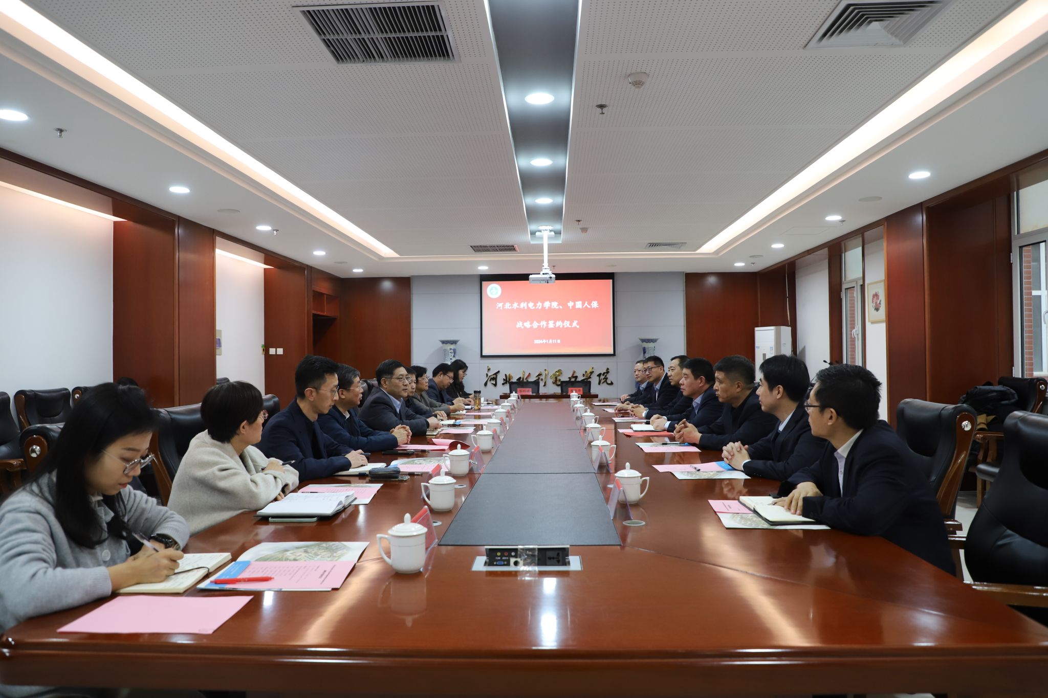 1月11日下午,我校与中国人民财产保险股份有限公司沧州市分公司举行了战略合作签约仪式。中国人民财产保险股份有限公司沧州市分公司党委书记、总经理魏宝兴,党委委员、副总经理刘凤利,党委委员、副总经理辛海鹏,党委委员、副总经理陈志春及相关部门负责人,校领导张效松、王滨、于振海、方敏及经济贸易系、科技处相关部门负责人参加座谈和签约仪式。会议由副校长于振海主持。 双方领导表示,两单位要建立长期稳定的战略合作伙伴关系,...