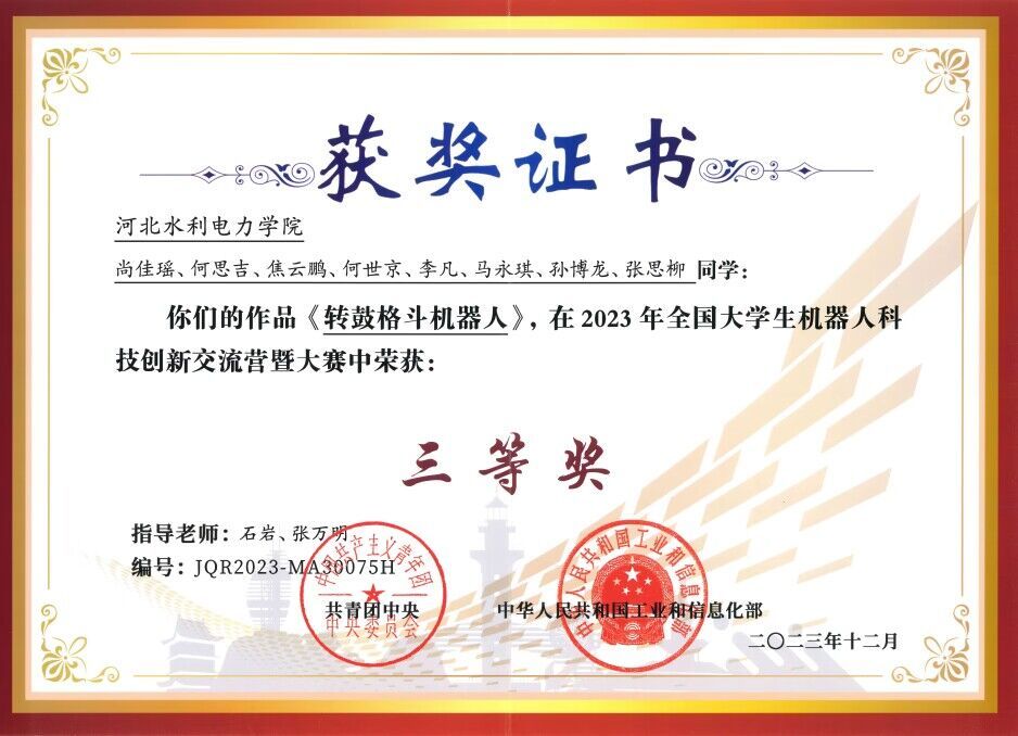 为深入贯彻党的二十大精神和习近平总书记关于青年工作的重要思想,落实习近平总书记关于共青团要在科技创新等领域争当排头兵和生力军的重要指示精神,我校积极组织师生参与由共青团中央、工业和信息化部举办的2023年全国大学生机器人科技创新交流营暨机器人大赛,机械工程系作品《转鼓格斗机器人》荣获三等奖。自本次申报工作启动以来,院团委高度重视,精心筹备,深度研究,积极推进,为参赛师生提供技术指导和服务保障,有效提升了参赛作品的特色和质量。...