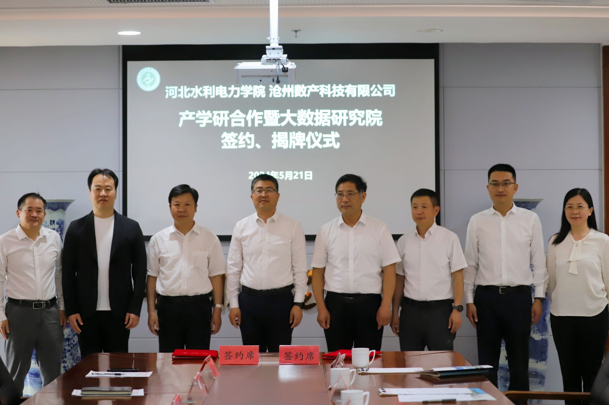 为深化校企合作、产教融合,培养高素质应用型人才,5月21日上午,我校与沧州数产科技有限公司开展产学研合作暨大数据研究院签约、揭牌仪式,仪式在弘文守正楼11层会议室举行。党委书记张效松,党委副书记、校长王滨,建投集团董事长张海勇、总经理李宗兆及校企双方相关人员出席仪式,仪式由计算机系党总支书记崔炳德主持。张效松对张海勇一行表示热烈欢迎,他从建校历史、办学历程、人才培养、专业建设、师资情况、科研工作、招生就业等方面介绍了学校基本情况,...