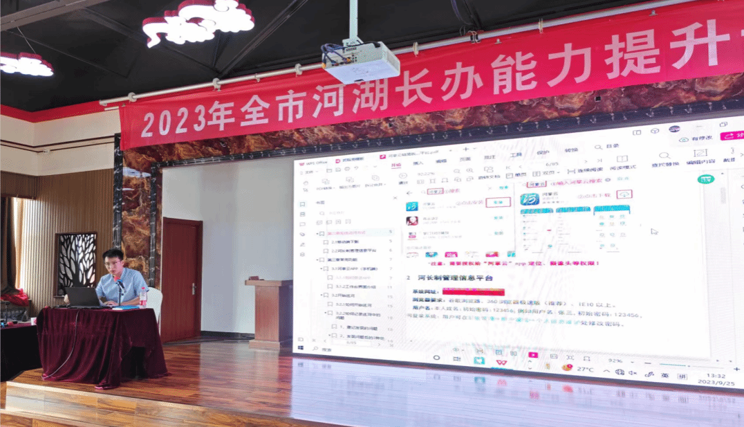 沧州市水务局党组成员、副局长牛保根,河海大学教授唐德善、沧州市河长办办公室主任邢春江、广发平台,广发网页版继续教育中心主任宋朝峰等领导和嘉宾出席会议并在主席台就座。参会人员有市河湖长制办公室工作人员,21个县(市、区)河湖长制办公室分管负责同志、科室负责同志及乡镇从事河湖长制工作人员等,共计七十余人。