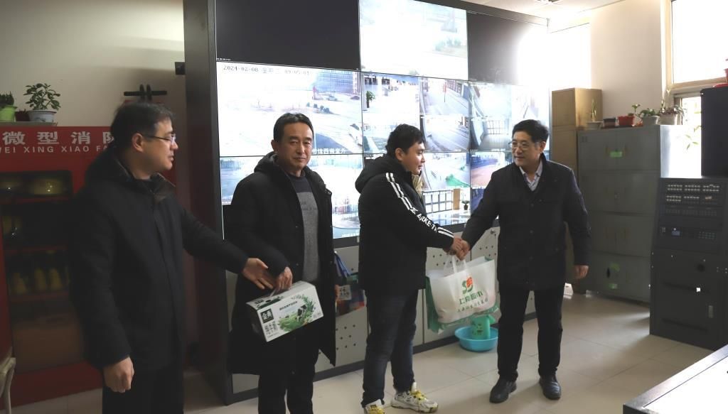 为保障学校各项工作的正常进行,许多教职工选择春节期间留在校园值班。在这个特殊的时期,学院领导深切关注在岗教职工的工作和生活情况。张书记一行先后到总值班室、消防监控室、锅炉房、修缮报修点、学生公寓值班室、校西门警卫室、高新区校区等处看望春节期间仍坚守岗位的教职员工,为他们送上了慰问品和节日祝福,感谢他们的辛勤付出和无私奉献,同时叮嘱他们安排好节日值班,坚守岗位,扎扎实实做好节日期间各项工作。