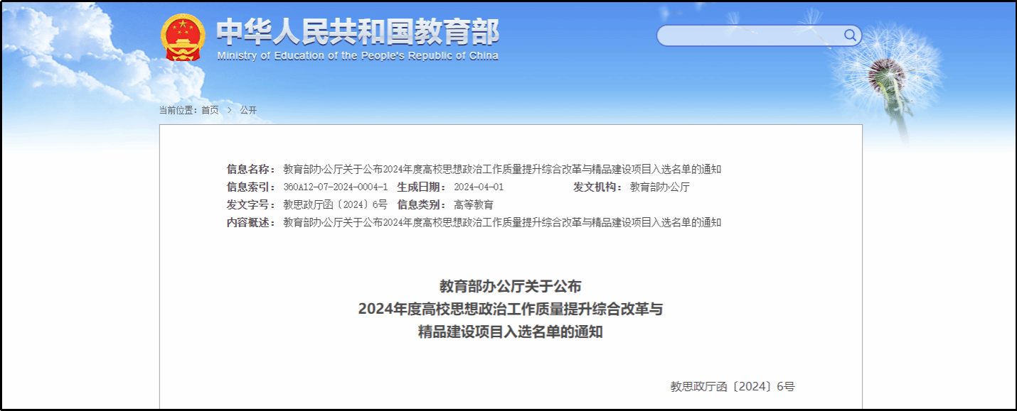 我校一心理辅导案例入选教育部2024年思想政治工作提升综合改革与精品项目