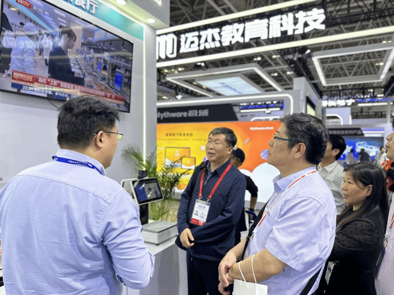 博览会期间,于振海一行逐一参观了信息化和智慧教育展区、后勤和平安校园展区、实验室和科研仪器设备展区以及高校和人才专区的实物展示和现场展演,内容涵盖人工智能系统、智慧校园、智慧教室等多个领域,与参展单位进行了深入交流,详细了解智慧技术赋能高校发展的最新成果。