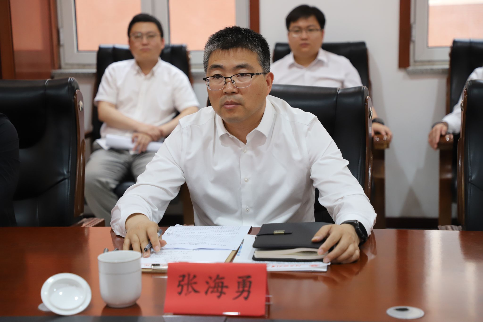 为深化校企合作、产教融合,培养高素质应用型人才,5月21日上午,我校与沧州数产科技有限公司开展产学研合作暨大数据研究院签约、揭牌仪式,仪式在弘文守正楼11层会议室举行。党委书记张效松,党委副书记、校长王滨,建投集团董事长张海勇、总经理李宗兆及校企双方相关人员出席仪式,仪式由计算机系党总支书记崔炳德主持。