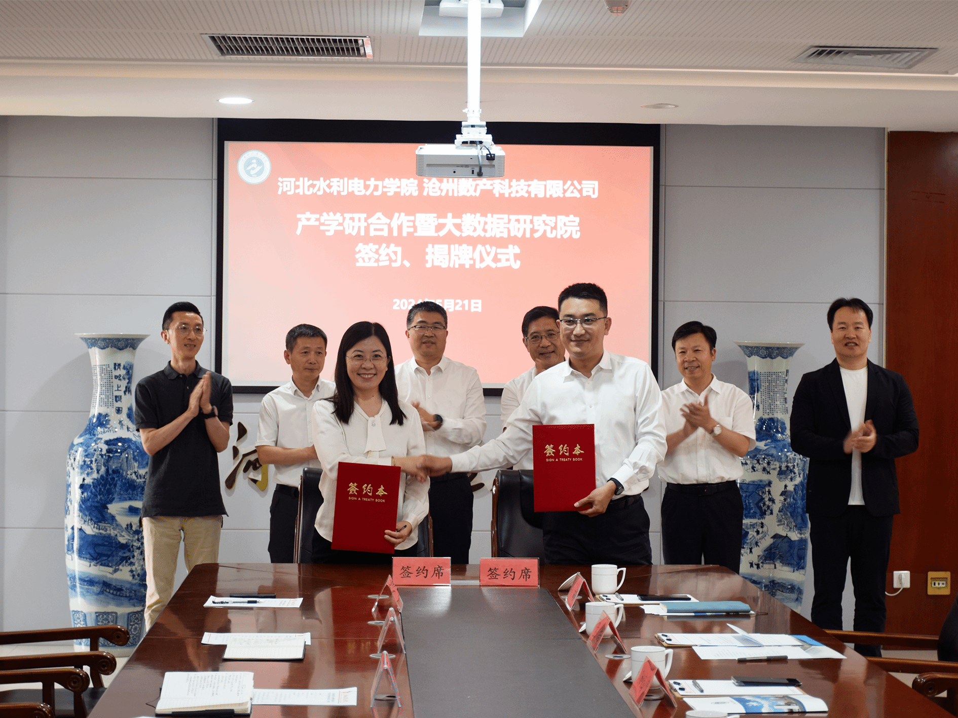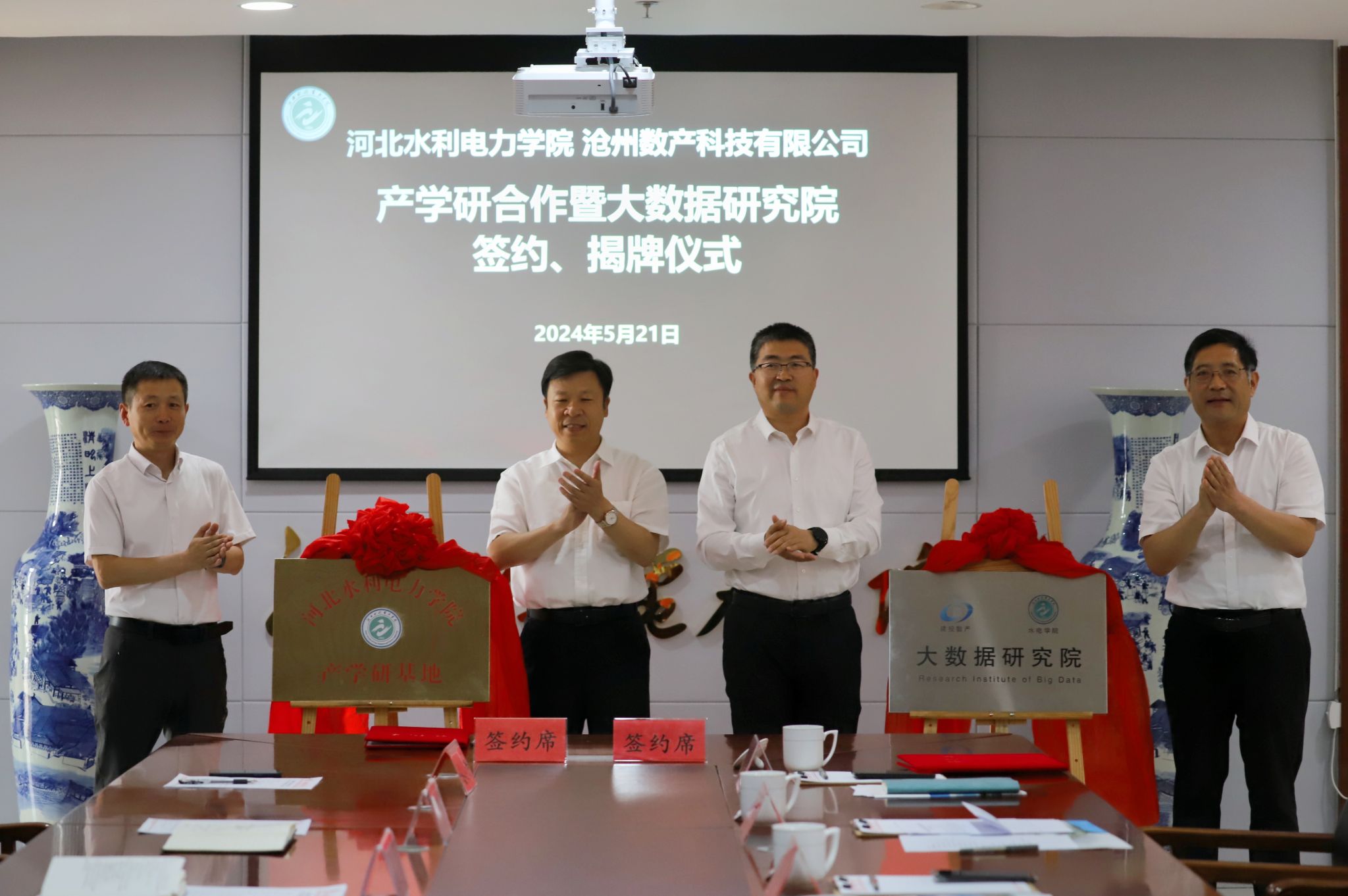 数据赋能 合作共赢——我校与沧州数产科技有限公司开展产学研合作暨大数据研究院签约、揭牌仪式