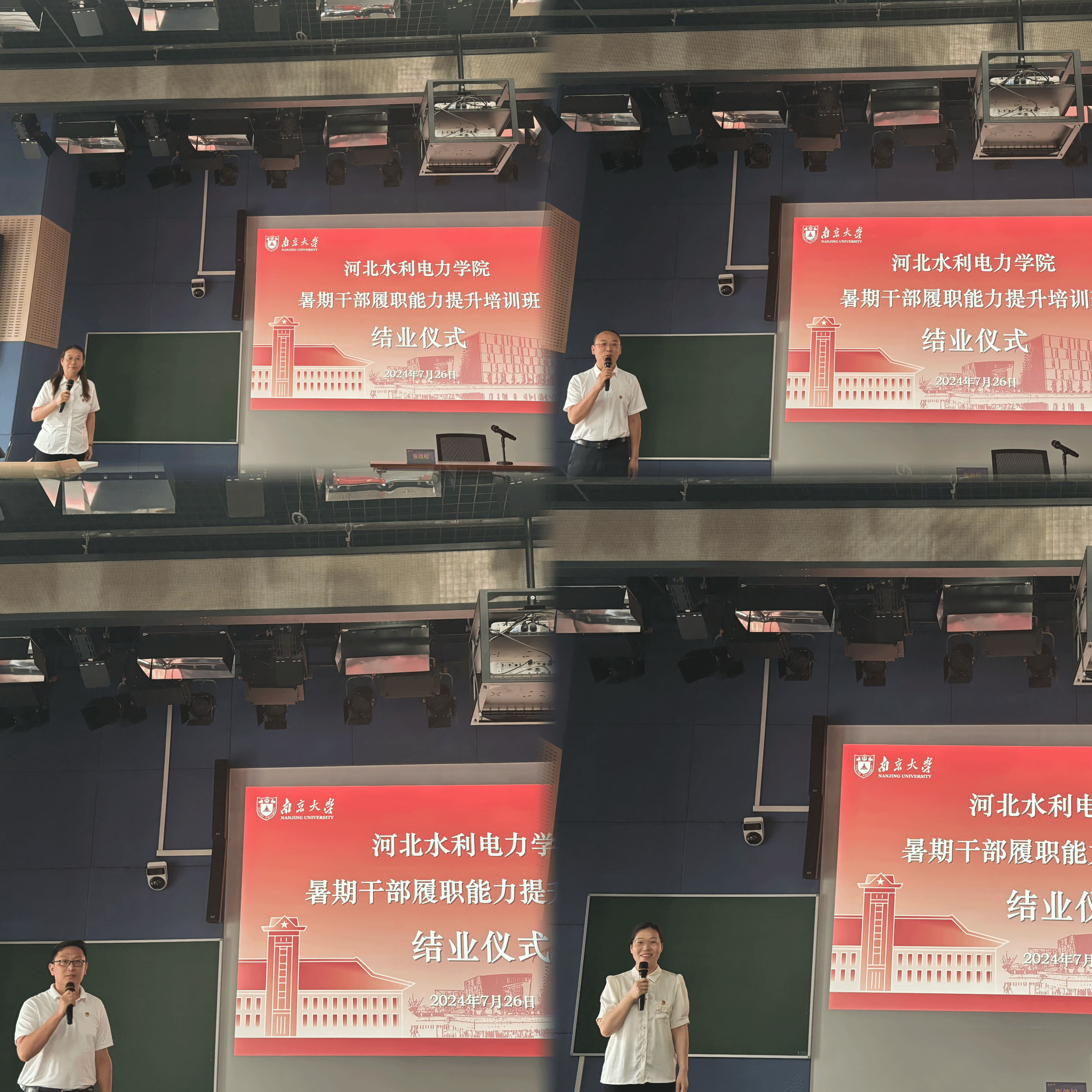 在26日下午结业仪式上,马克思主义学院院长贾启红、党委教师工作部部长、人事处处长裴祥喜、党政办副主任庞进、土木工程系党总支副书记韩艳丽分别代表各自研讨组作交流发言。