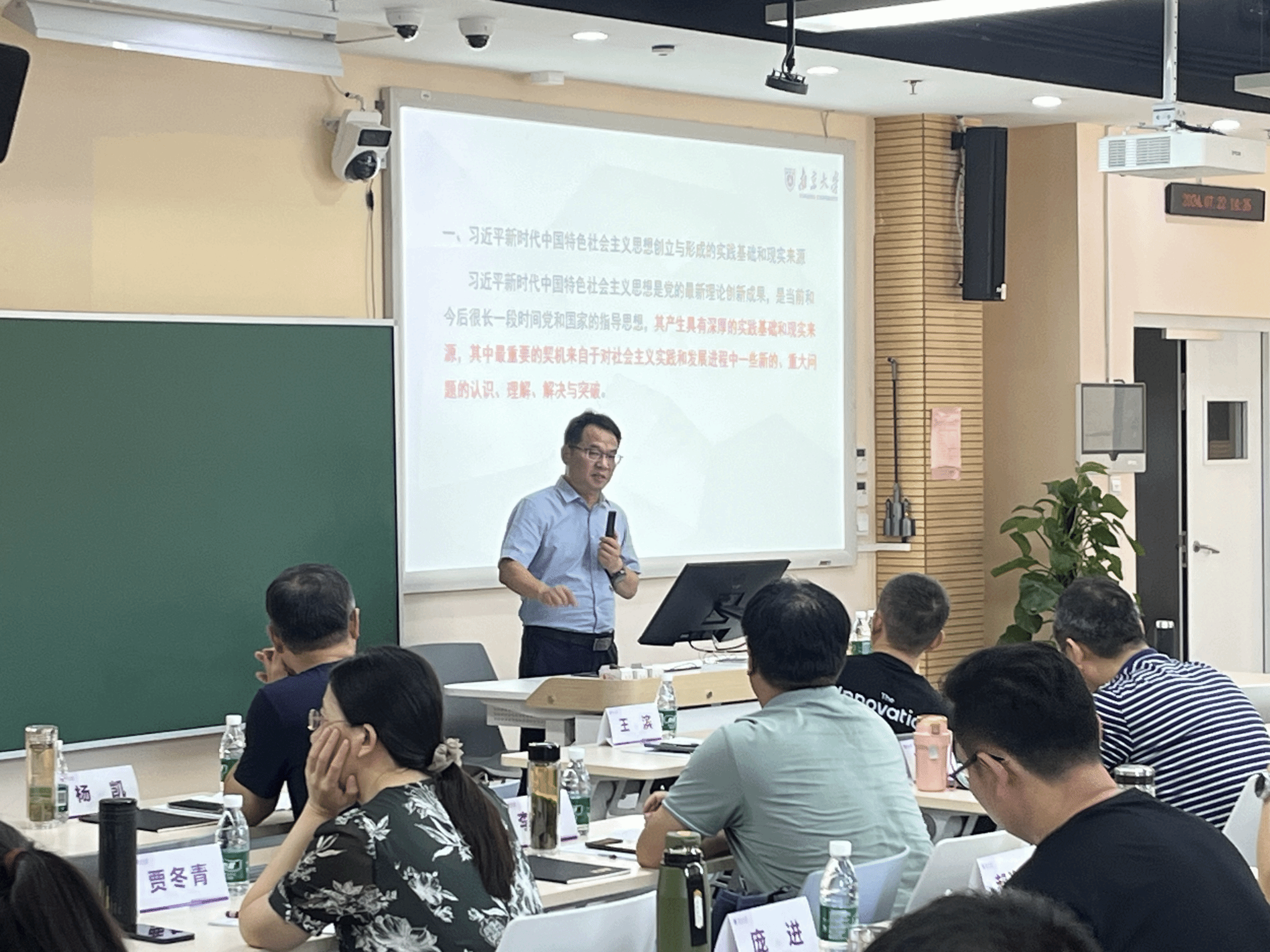 南京大学马克思主义学院副院长、教授陈健作了题为“习近平新时代中国特色社会主义思想创立与形成、发展与丰富的历史逻辑与脉络”的讲座,他系统而详尽地剖析了这一思想从孕育到形成、再到不断发展和丰富的过程,深刻阐述了其科学体系的构成与核心内涵,并高度评价了其在历史进程中的重大地位与深远影响。