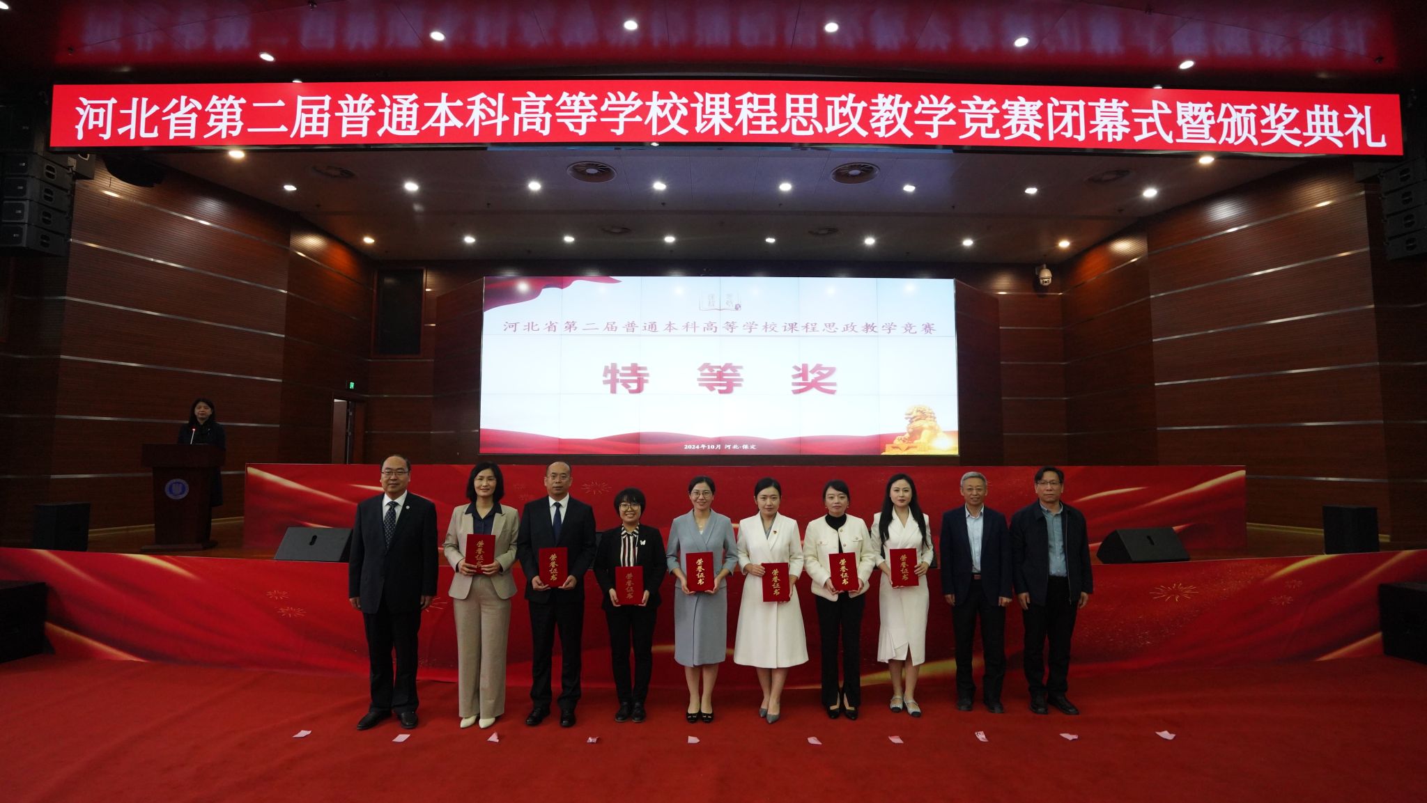 10月13日,河北省第二届普通本科高等学校课程思政教学竞赛在河北大学圆满落下帷幕。我校教师周银红荣获特等奖,并受邀在闭幕式上进行教学展示,蔡国庆荣获二等奖,安萍萍、王晓同荣获三等奖。